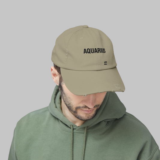 Aquarius Zodiac Unisex Distressed Cap – Trendy Astrology Hat for All Genders