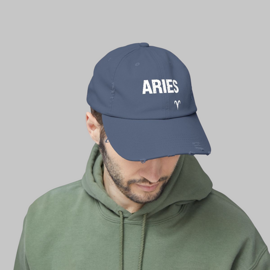 Aries Zodiac Unisex Distressed Cap – Trendy Astrology Hat for All Genders